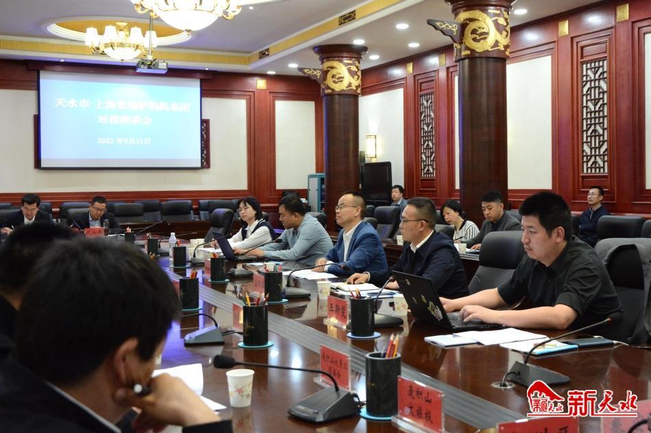 新天水讯【记者李欣桐】5月11日,副市长刘国军主持召开市政府与上海景域驴妈妈集团考察对接座谈会。双方围绕地企合作就推进我市文化旅游产业发展进行深入探讨交流。上海景域驴妈妈集团总裁王小松出席座谈会。