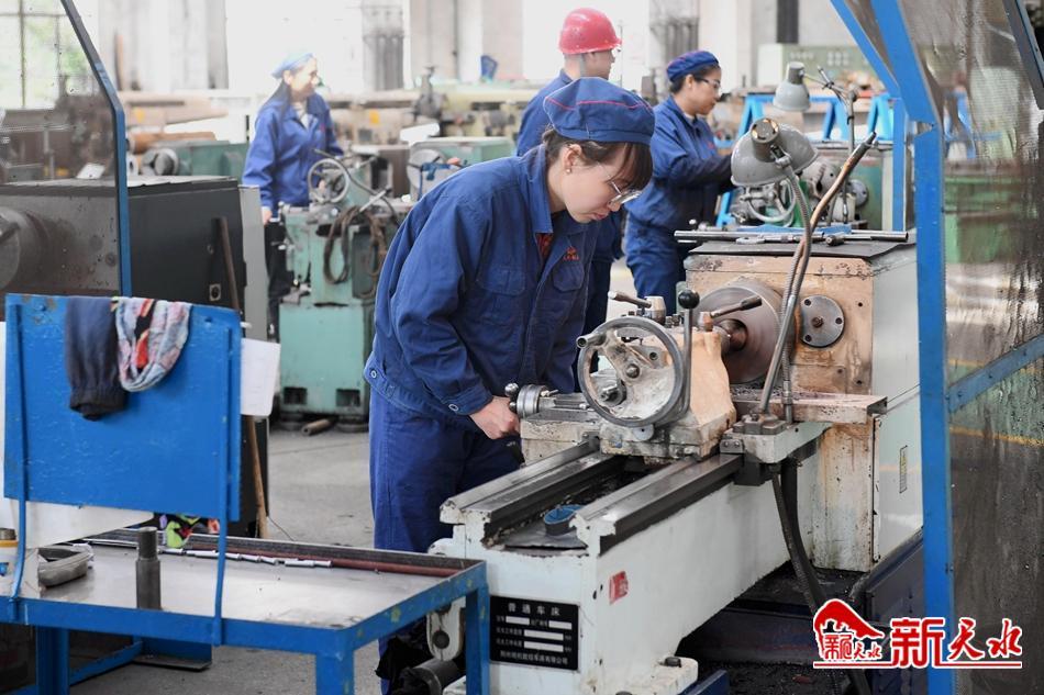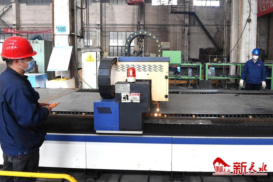 5月12日,天水锻压机床(集团)有限公司的工人在生产车间加工产品。