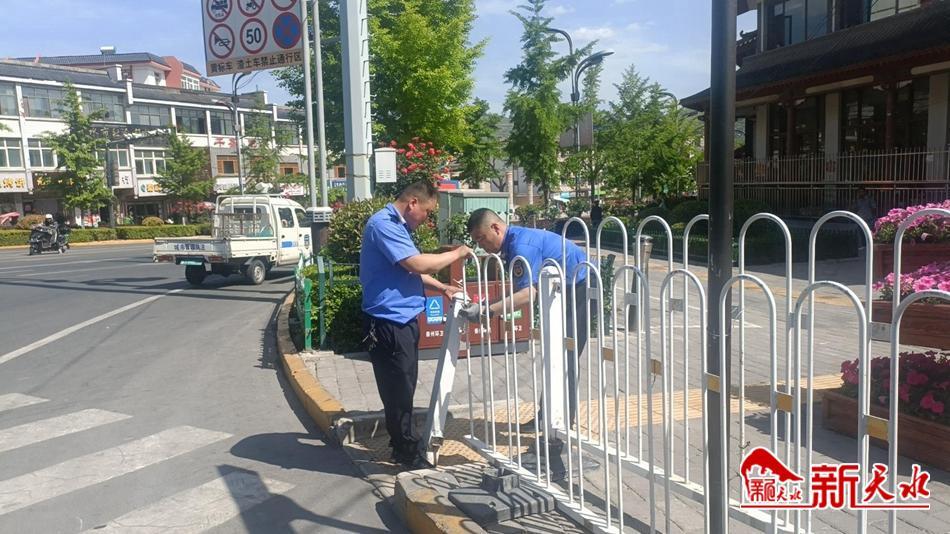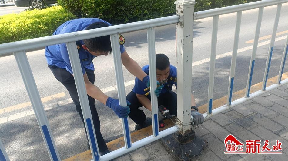 新天水讯【特约通讯员 王敏】 5月18日,秦州区执法局西关中队对辖区破损松动的隔离护栏进行了全面修复,保障市民出行安全。