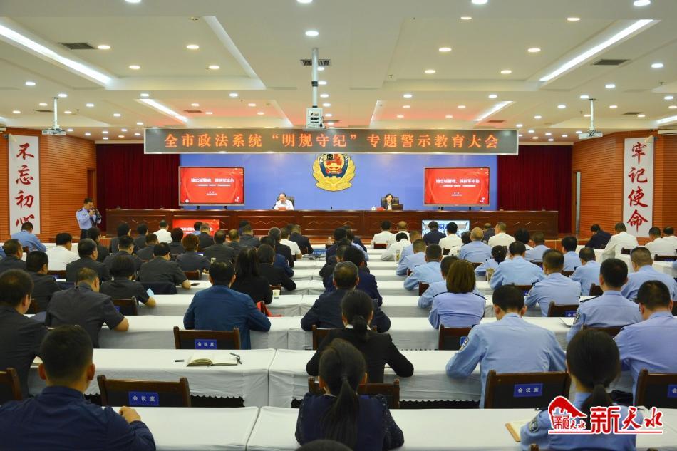 新天水讯【记者张彬霞】5月18日,天水市召开政法系统“明规守纪”警示教育大会。市委常委、政法委书记邵建斌主持会议并讲话。市委常委、纪委书记、监委主任王洋出席会议并作廉政报告。副市长、市公安局局长郭庆祥,市中级人民法院院长张志利,市检察院检察长杨耀明参加会议。