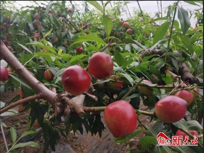 当记者来到陇城镇西关村汪梓坤的设施温棚内,一棵棵油桃树枝繁叶茂、一个个红彤彤的油桃挂满枝头,浓郁的果香扑鼻而来,让人垂涎欲滴。汪梓坤和家人一边忙着摘除影响果实受光的叶子,一边采摘、分拣成熟的油桃,陶醉在“甜蜜事业”的幸福里。