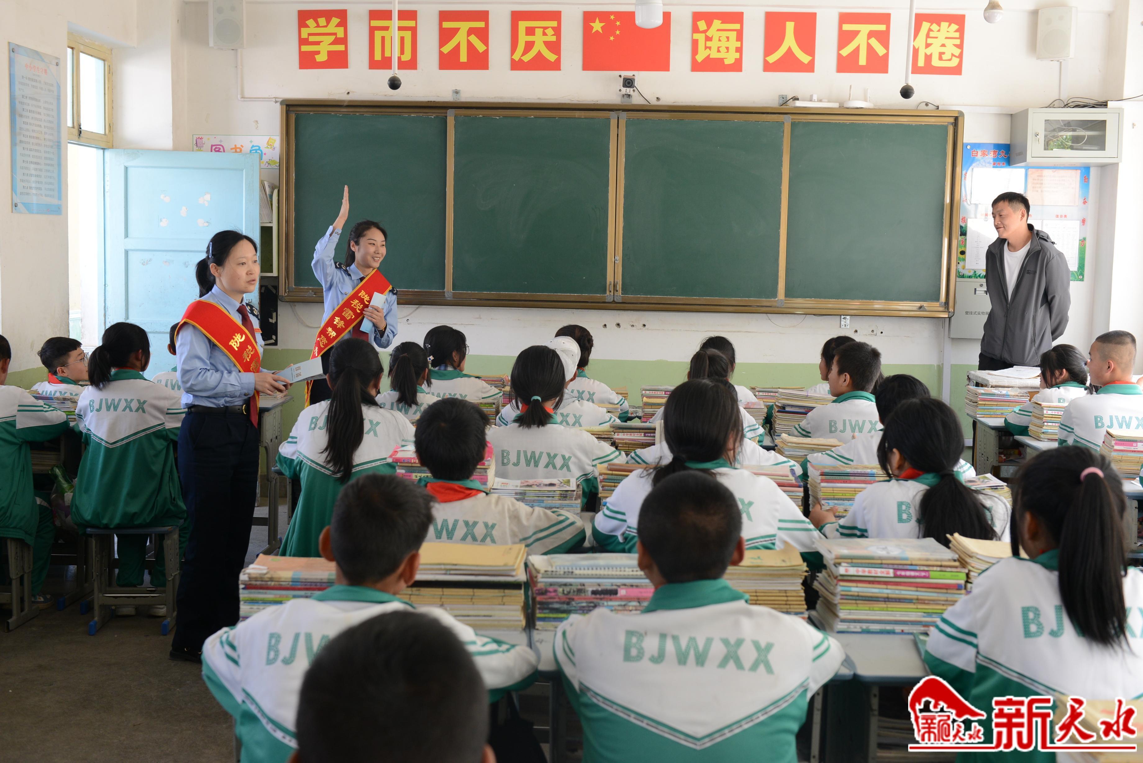 谈心交流,共话税收。税务青年干部结合自身的成长学习历程,通过现场互动和交流分享的方式,就孩子们如何健康成长和快乐学习作了经验分享,勉励他们要从小树立远大的志向,不负韶华勤奋学习、茁壮成长。随后,税务干部就个人所得税汇算清缴中遇到的问题及税收知识分别与学校老师和学生进行了互动交流。税务干部将税收融入日常生活,通过生动、平实的语言,从税收是什么、为什么征税及税收收入用在何处,深入浅出的向孩子们讲解了税收取之于民,用之于民的道理。在场的同学们都听得津津有味,纷纷举手发言,说出他们在生活中所看到的、感受到的税收知识,并表示要成为小小税收宣传员。