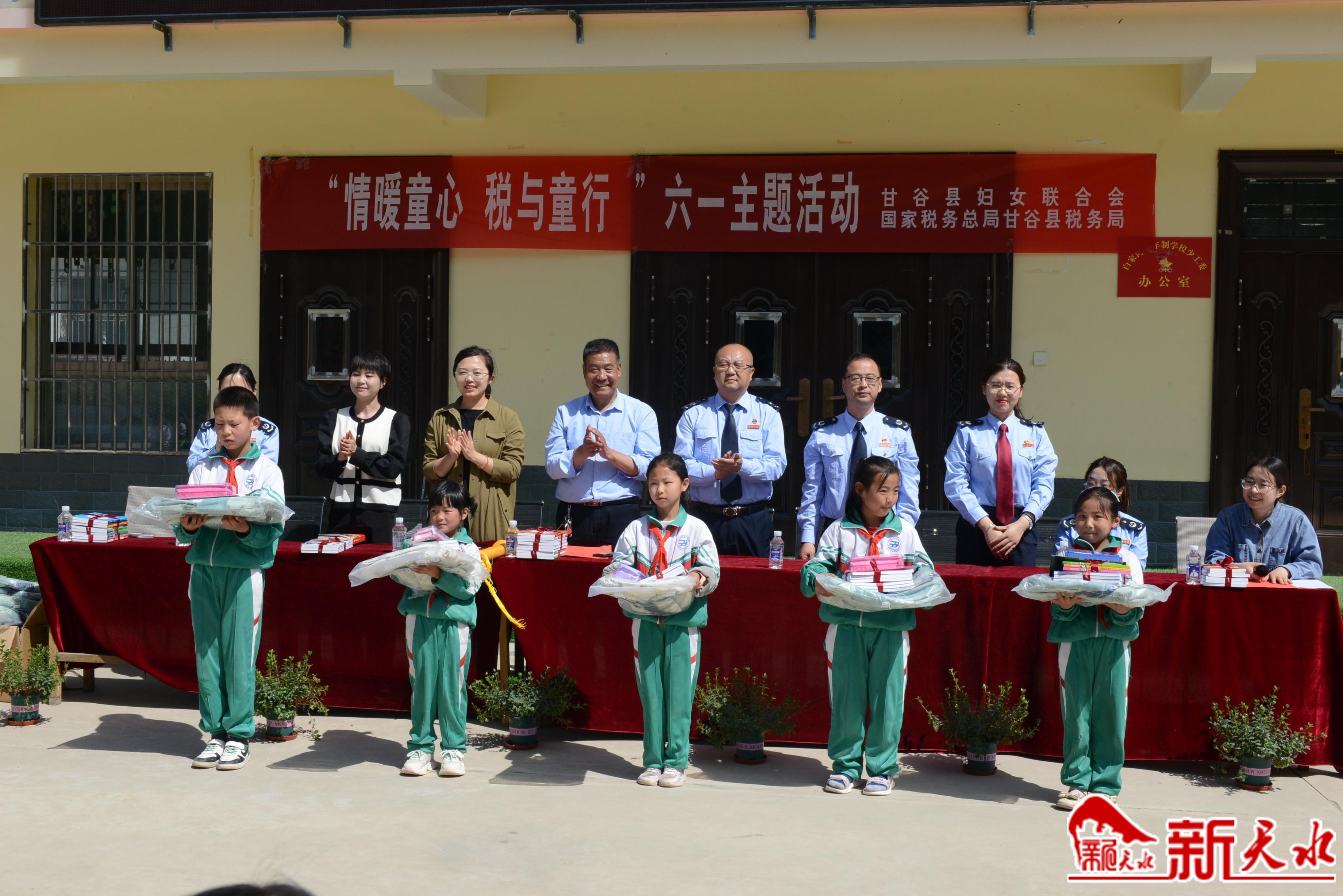 新天水讯 儿童是国家的未来,是民族的希望。5月22日,在第73个六一国际儿童节来临之际,甘谷县税务局联合县妇联在白家湾九年制学校开展“情暖童心,税与童行”六一儿童节主题关爱活动,为孩子们送上节日礼物和祝福,用实际行动传递真情,传递爱心。