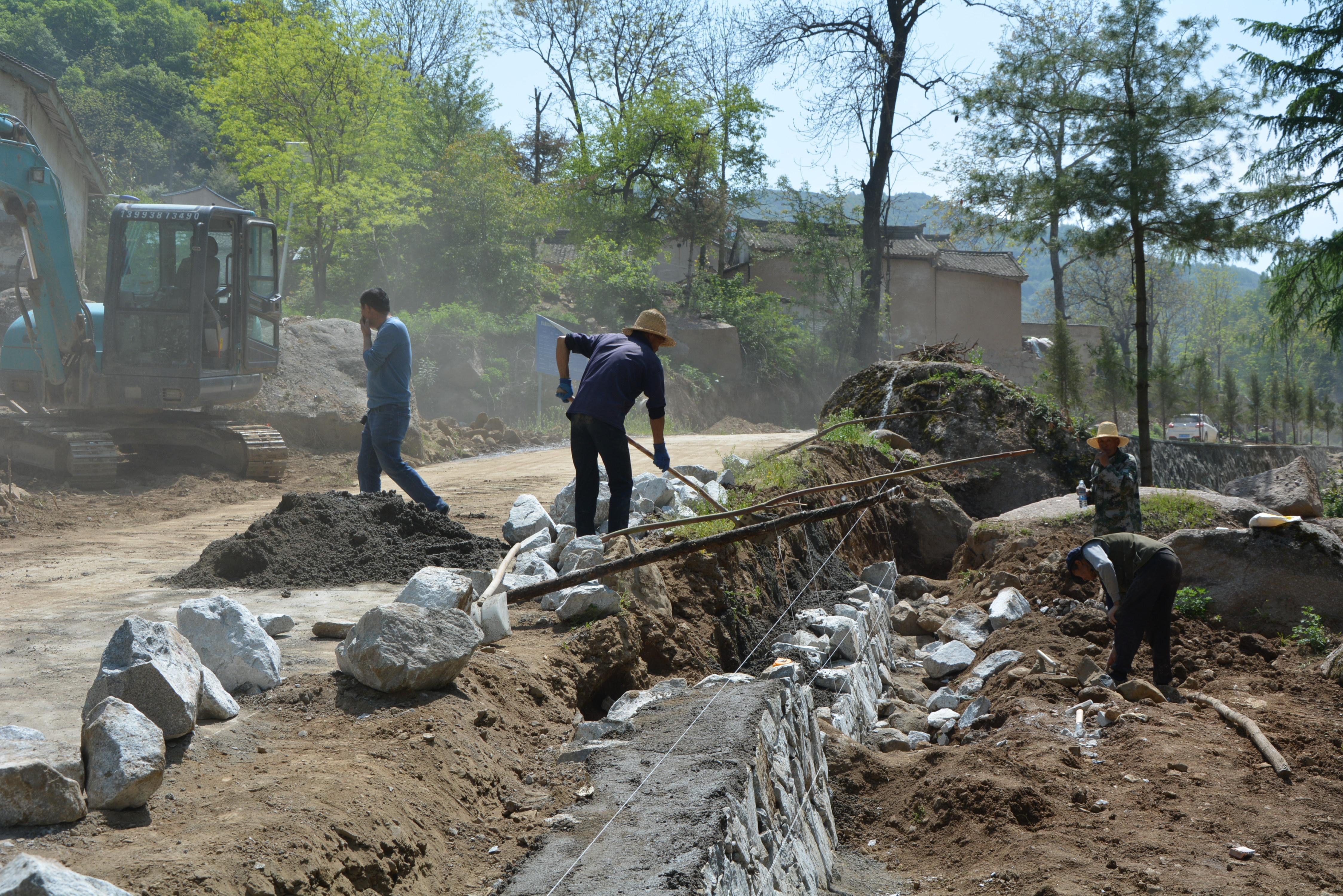 沿途记者看到,松树村正在进行基础设施全方位改造,施工现场机器轰鸣,工人们正忙着搅拌水泥砂浆、砌石、铺步道……一派热火朝天的劳动场景。