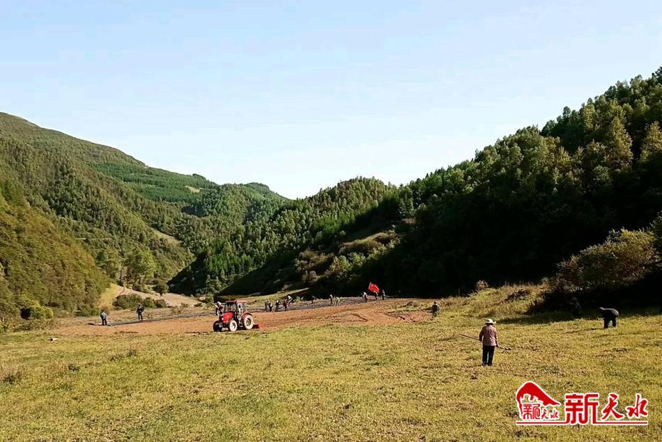 新天水讯 连日来,在武山县温泉镇马皇寺村,一台大型耕地机正在田间工作,一片片撂荒的耕地被摊平、翻新,整治工作如火如荼进行。在另一片已经被平整的地上,村两委班子成员带领党员、群众、公益性岗位人员正在施肥、覆膜、培土,现场一派繁忙景象。
