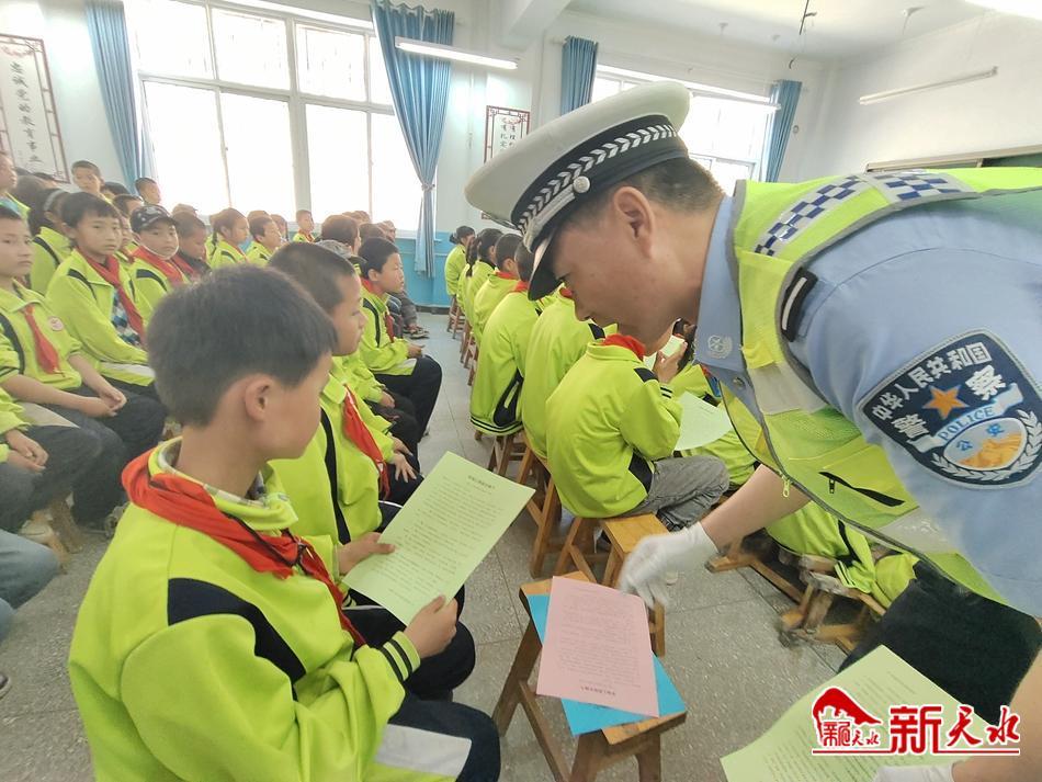 新天水讯【记者余碧波】5月24日,在“六一”国际儿童节来临之际,张家川回族自治县公安交警来到辖区木河中心小学开展“小手拉大手”“知危险 会避险”主题宣讲活动,为孩子们送上了一份特别的节日礼物。
