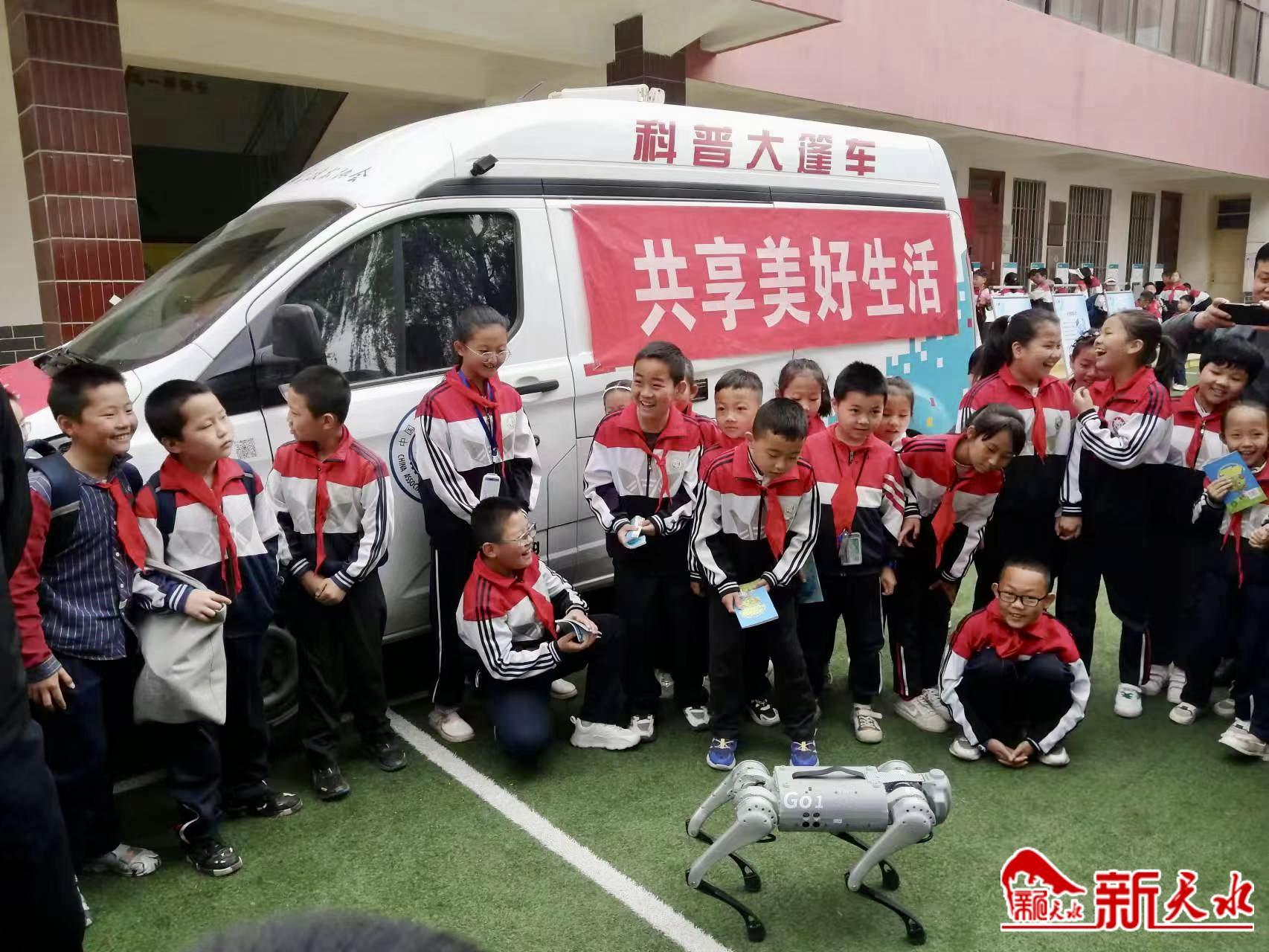 秦安县科协通过科普大篷车,向西川小学师生展示了声光电互动展品、电子狗表演、VR互动体验等多种科普展项,涉及声光现象、自然科学、电磁探秘、力与机械、生活常识的车载主题资源10余台。