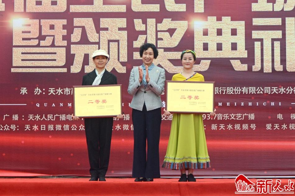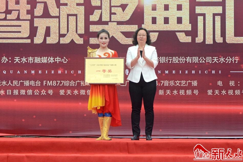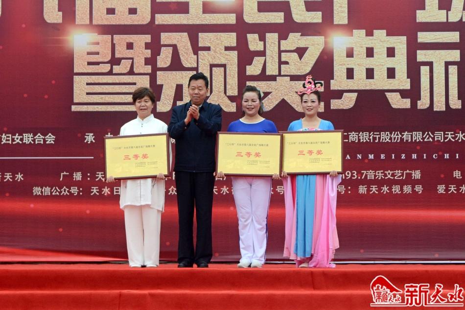 新天水讯【记者刘晓亚】5月28日,“工行杯”天水市第八届全民广场舞大赛决赛暨颁奖典礼在龙城广场举行。市委常委、副市长张宇晶,市人大常委会副主任李焕珍、市政协副主席何宝平出席颁奖典礼并为获奖代表队颁奖。