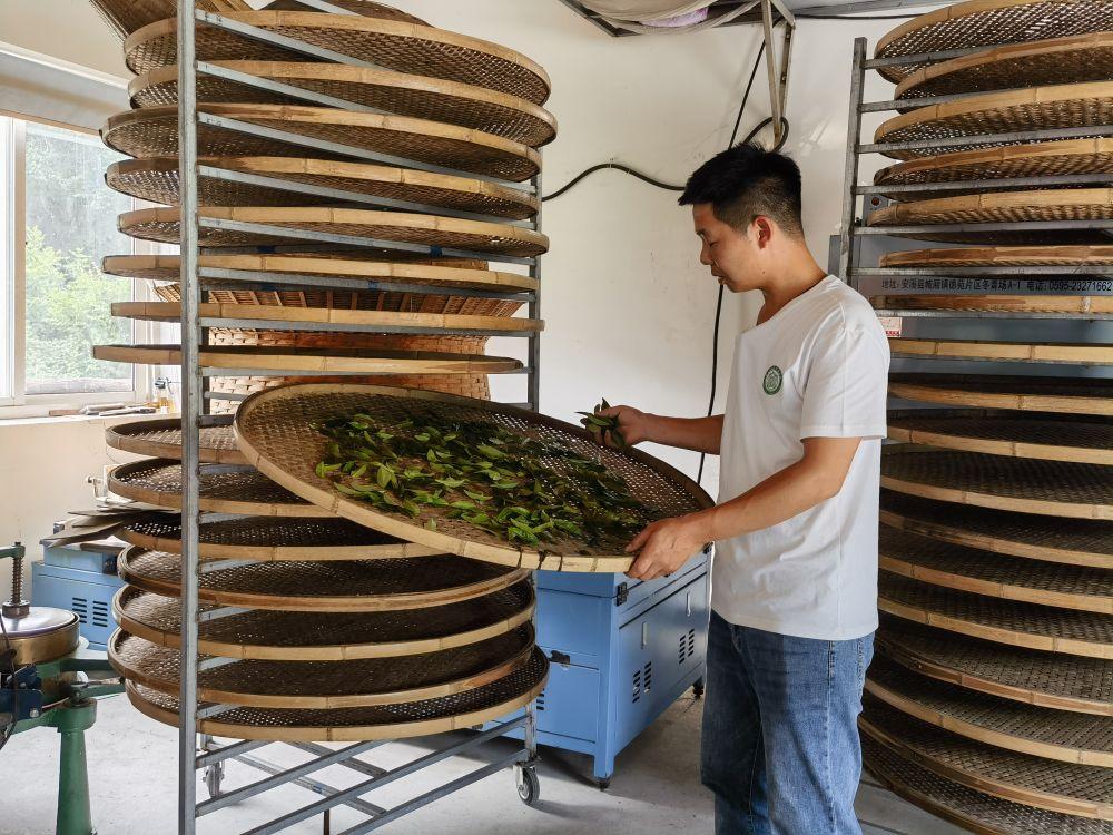 在金寨县全军乡金龙玉珠茶业有限公司的生产厂房,一台装着微波磁控管的设备引起记者的注意。“农技专家研究出‘微波杀青’技术,大幅提升了茶叶炒制的效率和质量。”总经理陈阳说。