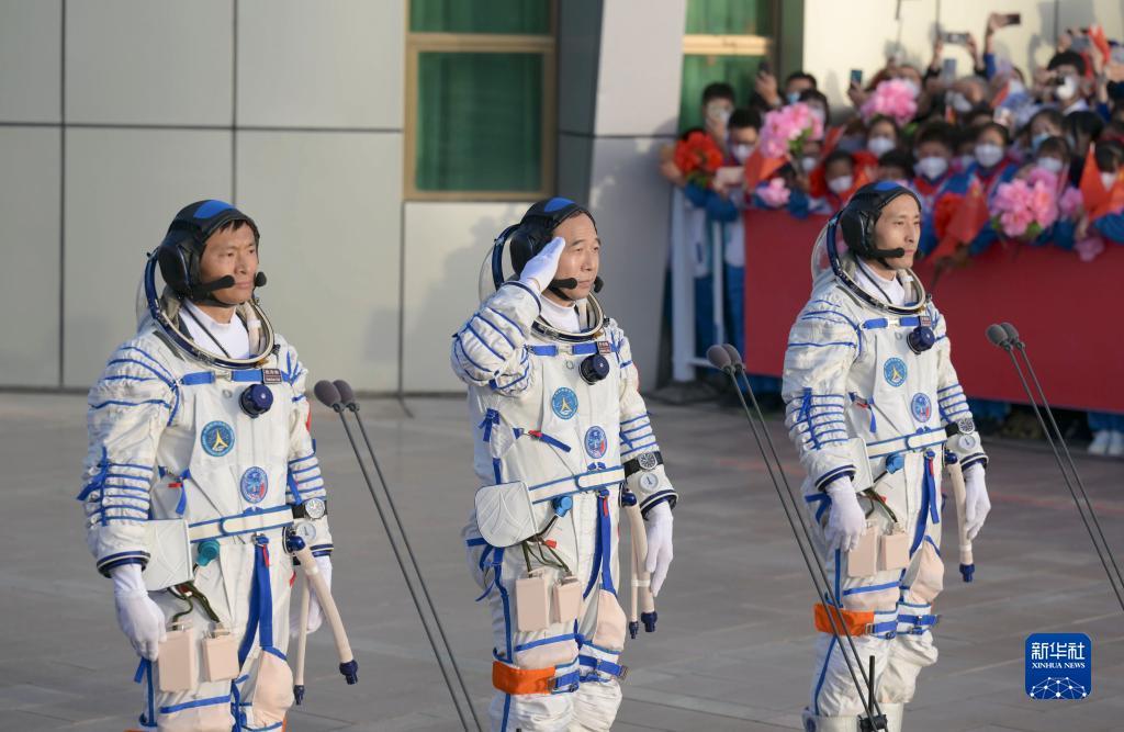 6时44分,中国载人航天工程总指挥、空间站应用与发展阶段飞行任务总指挥部总指挥长许学强下达“出发”命令,景海鹏、朱杨柱、桂海潮3名航天员领命出征。