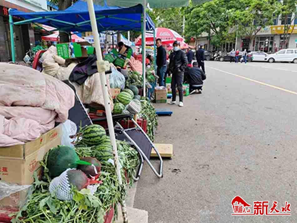 新天水讯 临近果蔬产出旺季,各类蔬菜水果逐渐上市,为解决广大菜农、果农、瓜农摆摊难、销售难、管理难等问题,近日,武山县城市管理行政执法局想群众之所想、急群众之所急、解群众之所困,专门为周庄西瓜开通绿色通道——设立便民临时经营摊位,对城区富强街、解放路果蔬摊点实行规范引导经营管理,想方设法尽最大努力给各位摊贩创造更广阔的经营空间,提供更优质的管理服务,助力三农产品持续畅销,推动县域经济稳步增长。