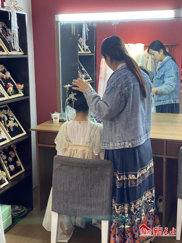 5月29日下午,在天水古城的一家摄影门店,一位穿着旗袍的小朋友在室外拍摄结束后,随着造型师回到了化妆间重新梳妆,随后小朋友换上了一身十分典雅的宋朝服饰。看到孩子忙着拍摄,家长对记者说:“往年‘六一’到来,除了给孩子买好看的衣服外,就是领着孩子大吃一顿,今年在新闻上看到玉泉观举办的‘花朝节’,女孩们身着古装,个个美丽动人,于是想着让孩子也拍摄一组古装,没想到‘六一’期间摄影门店也有针对小朋友们的优惠活动。”