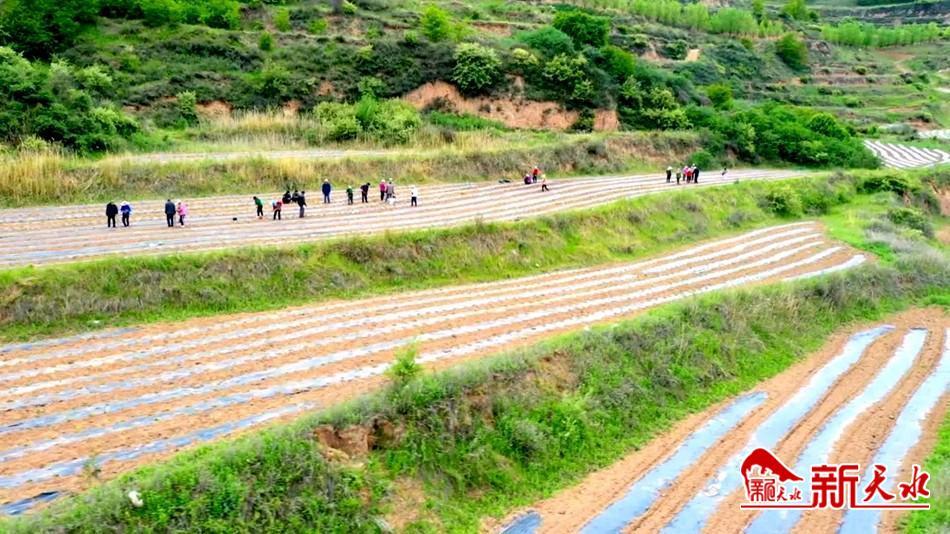 新天水讯【通讯员赵凯娜 赵甲伟】初夏时节,万物并秀。时下,清水县各乡镇正在积极开展万寿菊栽植工作。来到白驼镇刘坪村万寿菊栽植点,村民们正如火如荼开展万寿菊栽植工作,他们分工有序,密切配合,手持栽植“神器”,放苗、浇水、覆土,一派繁忙景象。