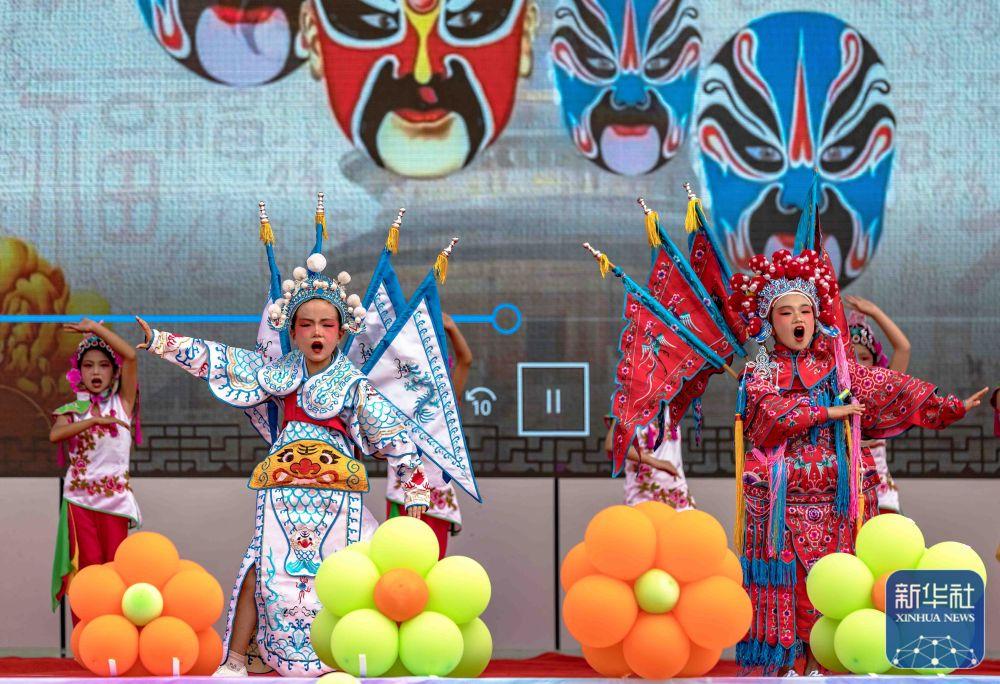 5月31日,在贵州省黔西市惠风学校,学生在表演京剧。新华社发(范晖 摄)