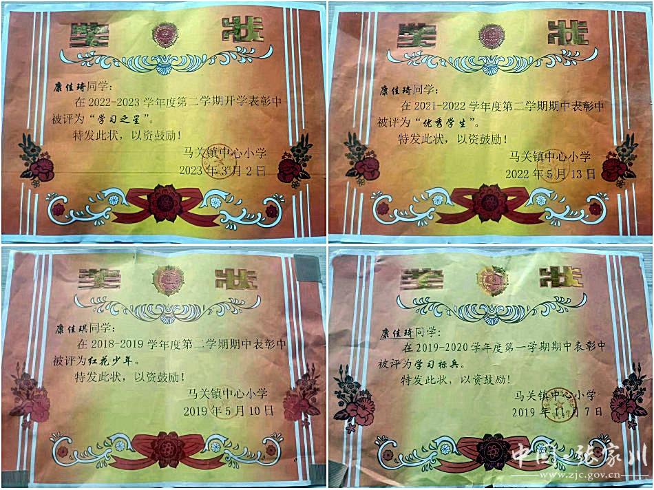 康佳琦就读于马关镇中心小学五年级。在学校期间,康佳琦尊敬师长、团结同学,不迟到、早退、旷课,学习认真刻苦,多次在校获得“学习标兵”“红花少年”“优秀学生”等奖项。同时,她还担任班长,积极主动、认真负责,能够在老师的指导下独立完成学校、班级布置的各项任务。