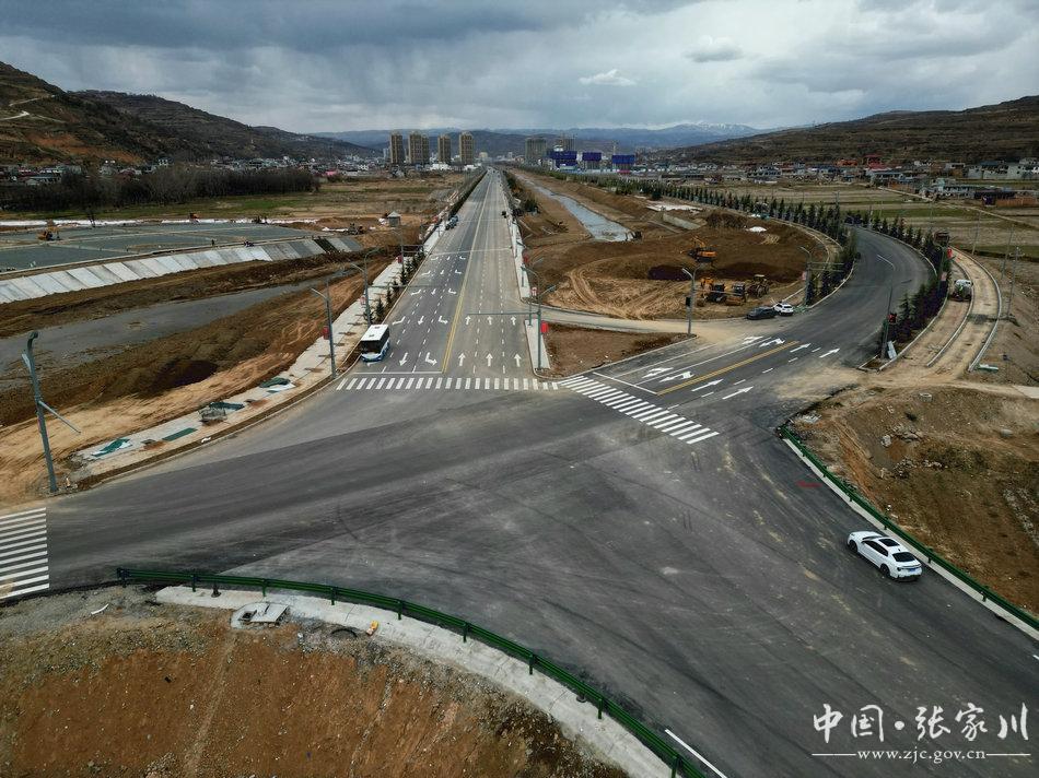 中铁十五局生产副经理杨群辉介绍道:“张家川连接线全长931米,设计宽度为12米,为双向两车道设计,主要工程有一座桥梁,两个涵洞。其中,后川河大桥全长157米,两座涵洞均为4米钢筋混凝土兼排水涵。目前剩余工程为防、排水工程,目前进度已进展80%,剩余工程将于4月15日全部结束。”