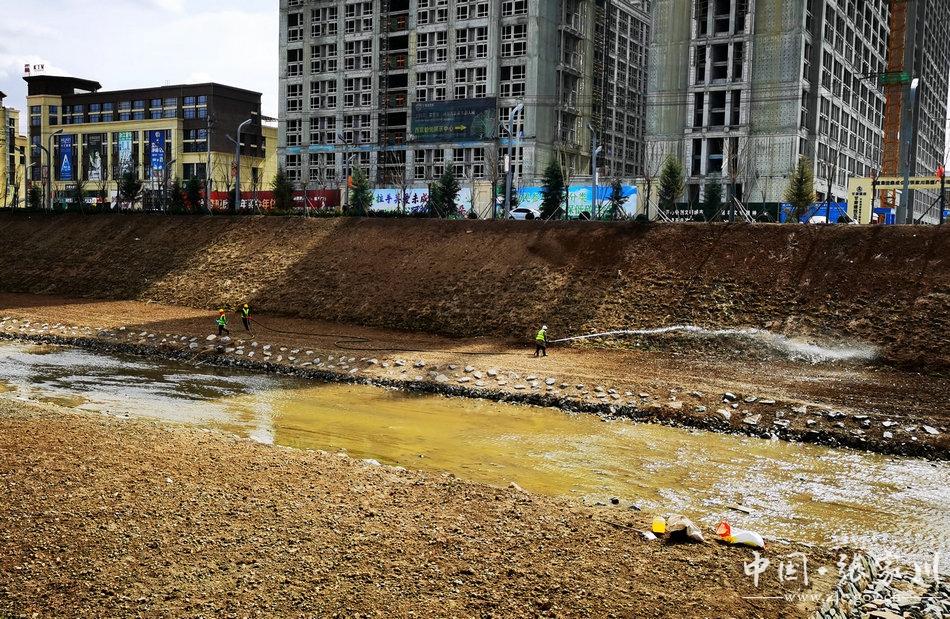 “河清两岸阔,春光一片明。”与西城中学项目相距不远处,市政绿化和河道治理工程同步开展。