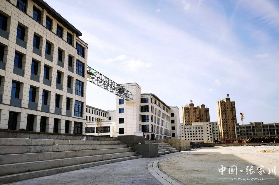 在西城中心项目建设现场,据施工方省九建公司张家川分公司负责人魏牛生介绍,西城中学规划校园总占地面积135466.58㎡(约合203.4亩),总建筑面积115983.76㎡。建筑结构形式为框架结构,设计使用年限50年,抗震设防烈度8度。地上建筑面积90687.58㎡,地下建筑面积25296.18㎡。其中综合实验楼28959.6㎡、综合艺术楼27958.6㎡,1号教学楼13050.37㎡、2号教学楼13050.37㎡、学生宿舍楼18618.36㎡、食堂及教师公寓楼10969.34㎡、风雨操场2377.12㎡、配套建设校门3座、塑胶运动场19859.37㎡、主席台及看台1000㎡,设地下停车位184个,同时完善校园硬化、绿化、亮化及室外三网等附属设施建设。目前,所有楼宇工程主体及装修装饰已基本完工,现在正在开展绿化、亮化、路网、体育场及看台等设施的建设,整个项目计划在5月30日前后全部完工。