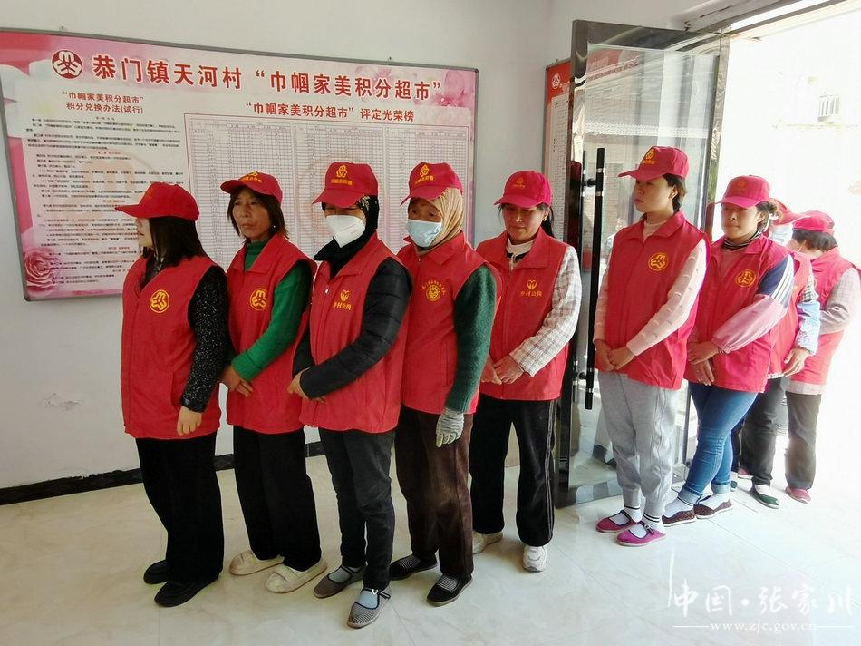 另一边,恭门镇天河村“巾帼家美积分超市”的积分兑换商品活动正在火热开展。积分超市里商品琳琅满目,天河村妇联主席组织工作人员发放商品,并登记积分手册,将结果记录在“巾帼家美积分超市”评定光荣榜上,妇女群众有序排队,持积分卡依次领取袜子、毛巾等生活用品,兑换现场热情高涨,妇女们个个笑逐颜开。
