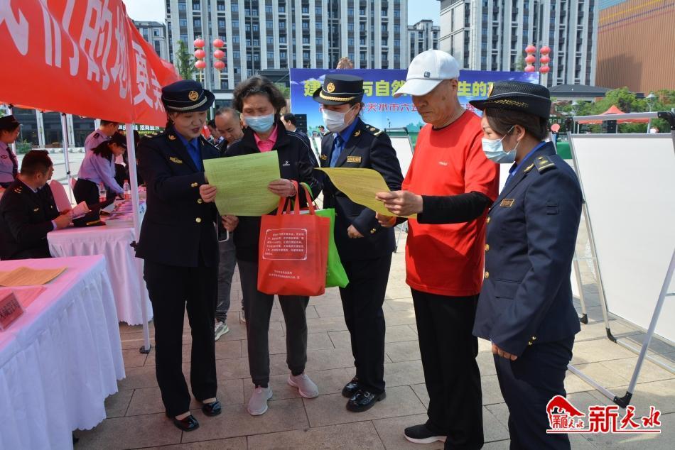 启动仪式上,市文明办为天水市生态环境局麦积分局志愿服务队授旗,甘肃森续环保能源设备有限公司负责人代表环保企业宣读环保倡议书。活动现场,市、区环委会有关成员单位与市农工党、市供电公司、甘肃森续环保能源设备有限公司、甘肃水投天水水务集团等部门单位及相关企业设立了宣传咨询台和展板,为群众现场发放生态环境保护、绿色低碳发展和生物多样性保护等宣传资料,集中向公众展示我市生态文明建设和生态环境保护方面的成功经验和工作成效,对群众关心的热点问题进行答疑解惑。
