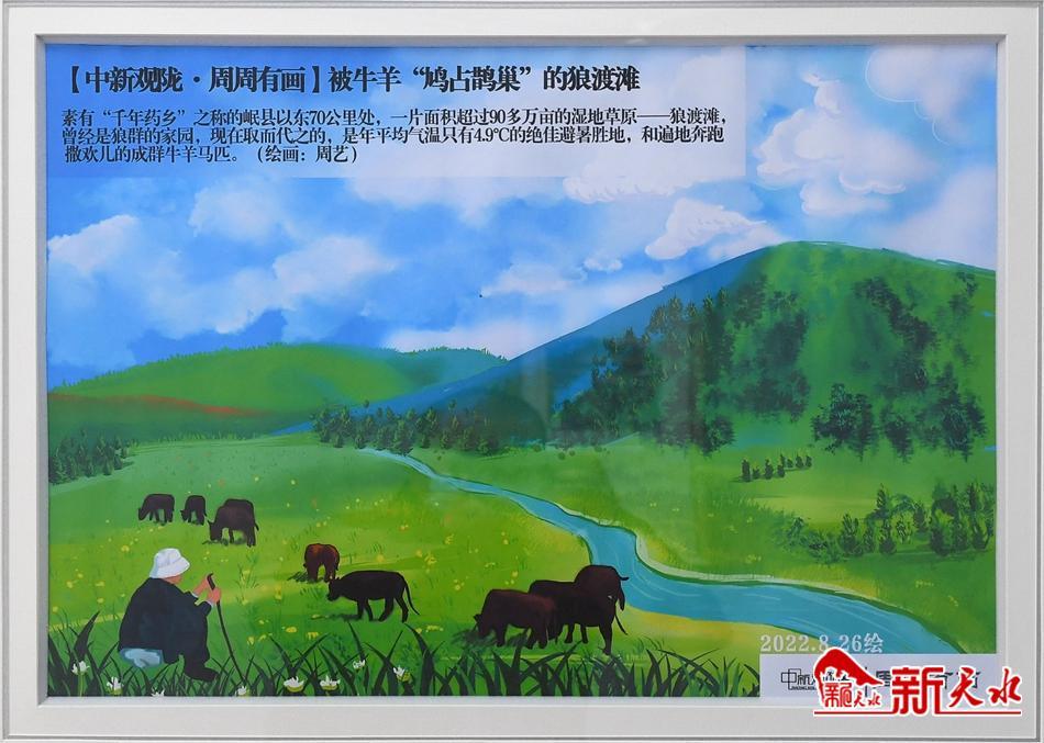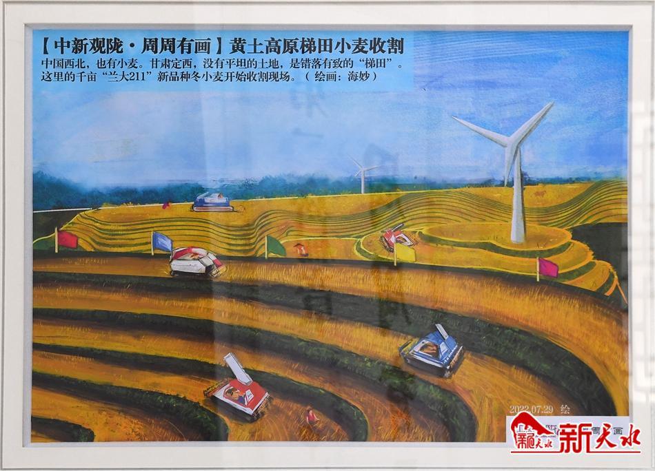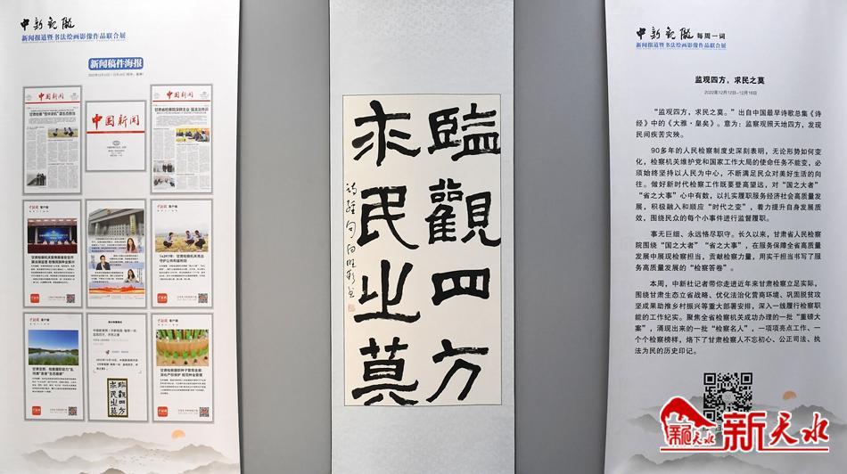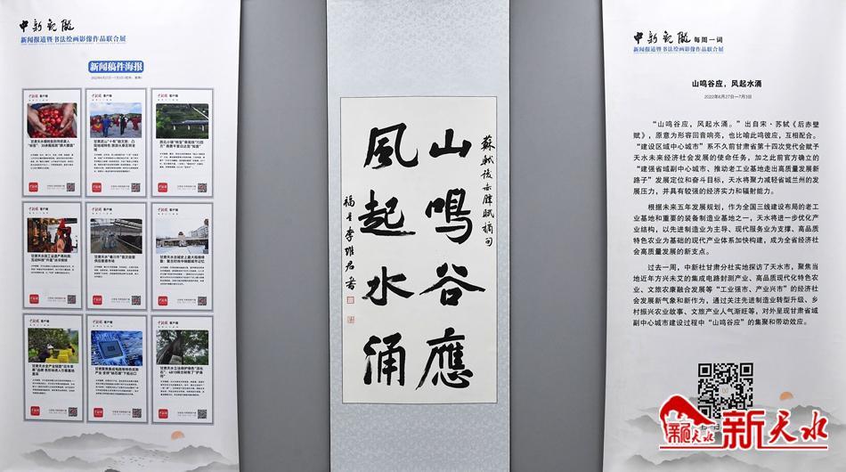 展览分为《每周一词》《周周有画》《二十四节气》《影像作品》《国际传播》五个篇章,包括书法53幅、绘画60幅、文图视频新闻报道数百篇,展出时间为6月5日至9日。本次展览将新闻报道和传统书画艺术结合起来再创作,探索创新新闻报道和传统书画艺术的融合表达,着力讲好甘肃故事、天水故事。