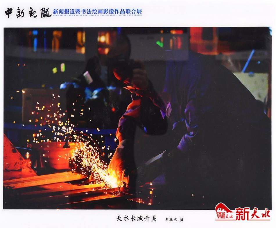 6月5日,天水市民在天水美术馆观看中新观陇·新闻报道暨书法绘画影像作品联合展。