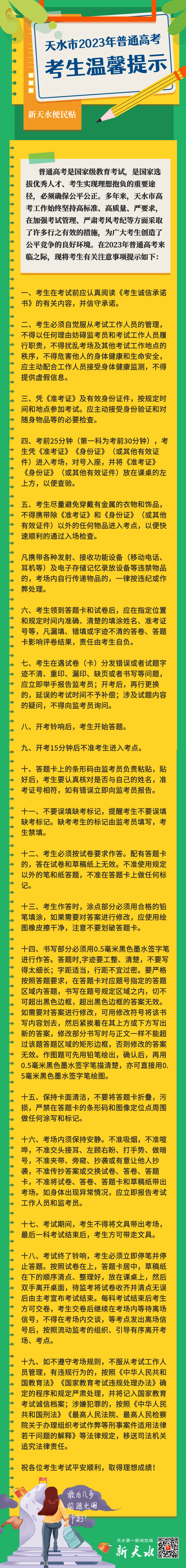 【2023年高考】便民贴 | 天水市2023年普通高考考生温馨提示