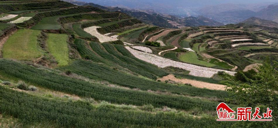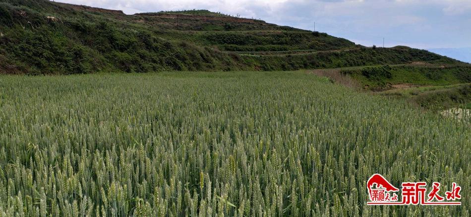 新天水讯 时值芒种,武山县山丹镇龚山村的百亩小麦,枝壮叶肥,麦穗饱满。近期雨水多,土壤墒情好,小麦长势喜人。放眼望去,绿油油的麦浪,铺满了山坡,点缀着田野,在阳光照耀下生机盎然。