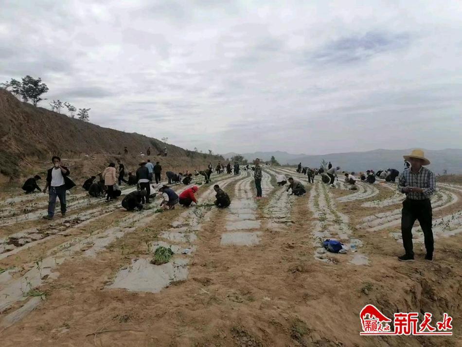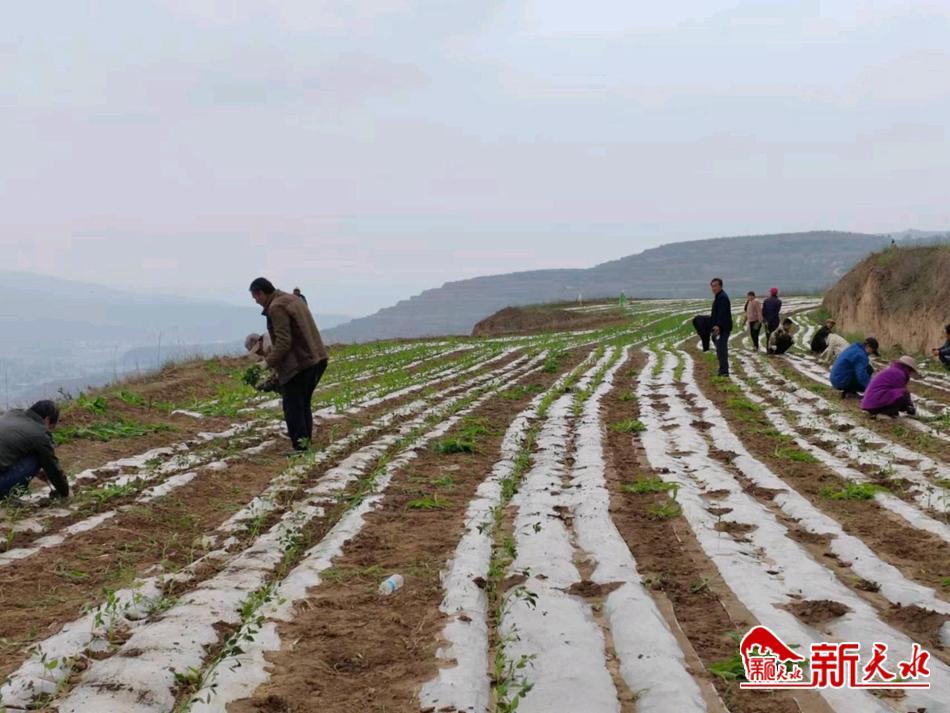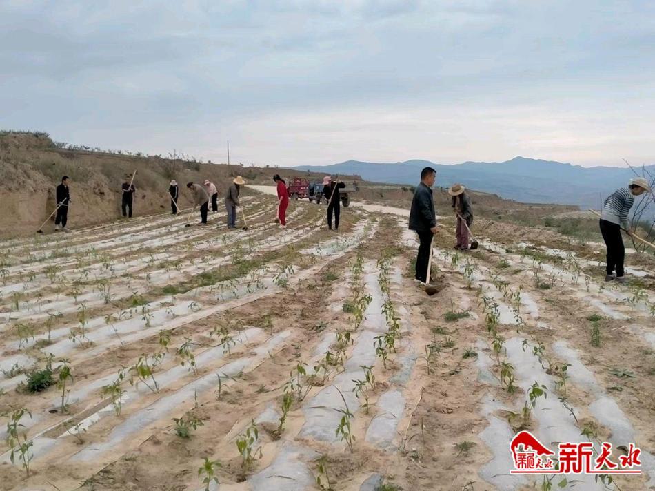 新天水讯【通讯员张子义】田家少闲月,五月人倍忙。时下,气温逐渐回升,迎来了辣椒苗移栽的好时节。在甘谷县磐安镇毛家坪辣椒种植基地,村民们抢抓农时,忙着栽植辣椒,呈现出一派热火朝天的繁忙景象。
