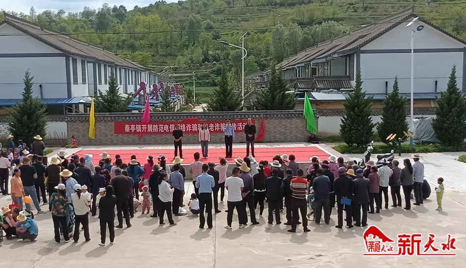 新天水讯 6月6日,清水县秦亭镇综治中心联合派出所,在赵尧新村集中开展防范电信网络诈骗和养老诈骗宣传活动。