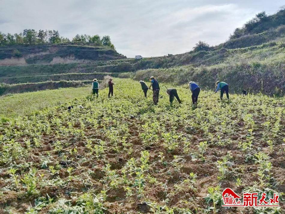 新天水讯 日前,笔者走进清水县新城乡蚕豆种植点,放眼望去满目绿意,垄沟上整齐的蚕豆苗茁壮成长,生机勃勃。村民们正在蚕豆地里除草、扶苗、浇水,村干部细心指导他们对蚕豆进行夏季管护,一派繁忙劳作的景象。