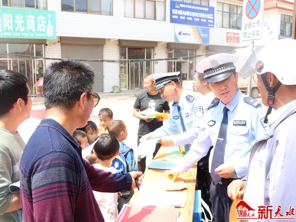 6月9日,张家川回族自治县公安局交警大队多形式开展道路交通安全执法突出问题专项整治宣传月宣传活动。民警通过悬挂横幅、发放宣传资料、面对面讲解、收集问题、张贴通告等方式,向群众宣传专项整治重点内容和道路交通法律法规知识,并对群众反映的道路交通安全执法领域突出问题进行解答,呼吁广大人民群众积极反映、举报身边存在的逐利执法、执法不规范、执法方式简单僵化、执法简单粗暴、执法“寻租”等问题现象,同时面对面了解司乘人员的真实诉求,倾听他们对交警执法工作的意见和建议。