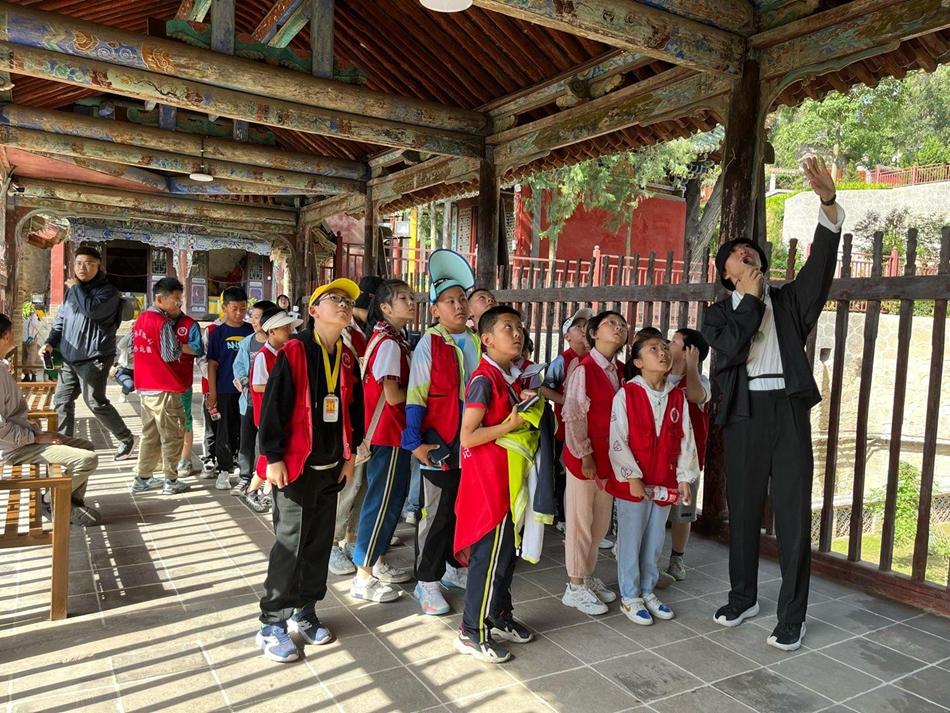 玉泉观是我市重要的人文景点之一,也是全国重点文物保护单位,国家AAAA级旅游景区。在当天的活动中,学生们不仅领略了玉泉观夏季的美景,聆听了景区的现场讲解,通过观摩互动和核心区域“寻宝”的趣味游戏,学习和掌握了丰富的历史知识和文化内涵,增强了文化自信。同时,他们还在玉泉观大景区体验了传统游戏投壶、射箭,在沉浸式体验中领略了传统文化的独特魅力。