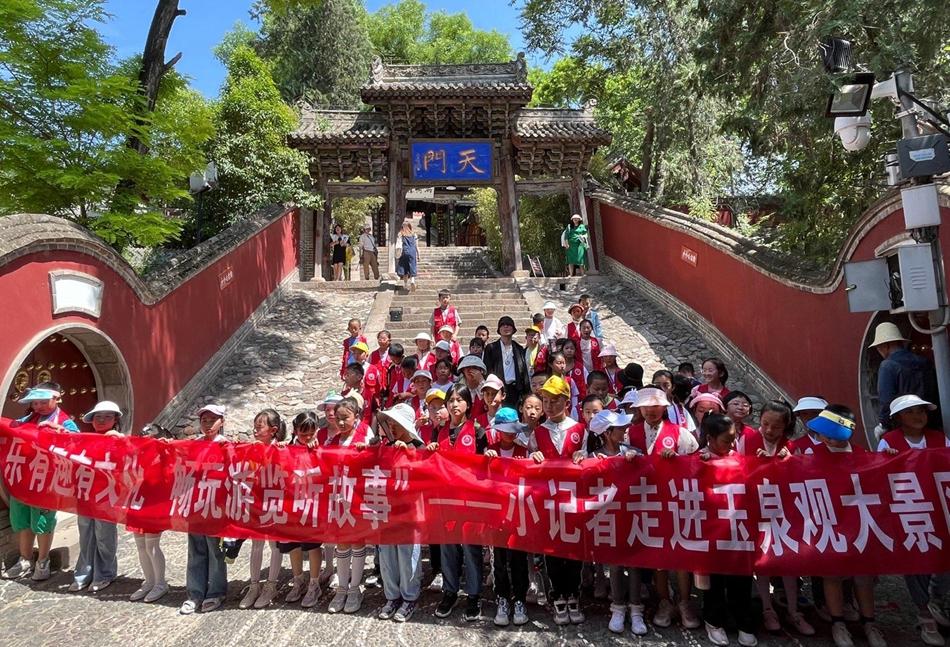 新天水讯【通讯员马岚】6月10日,时值中国第七个“文化和自然遗产日”。天水市百名小学生组成的小记者团队来到秦州区玉泉观大景区,开展“有乐有趣有文化,畅玩游览听故事”主题活动,身临其境感受家乡的自然风光、了解传统文化、参观文物古迹,树立宣传、保护、传承家乡文化和自然遗产的自觉意识。