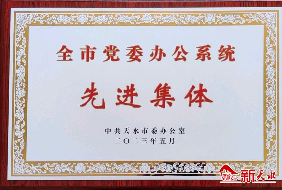 新天水讯 近日,笔者从有关部门获悉,秦安县千户镇党政综合办公室荣获全市党委办公系统先进集体称号。