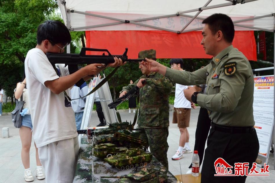 此次活动还设置两个征兵咨询点,活动共发放宣传彩页3000余份,接受咨询300余次,通过指导有意愿报名学生现场操作模拟枪械、征兵工作人员讲解入伍经历等方式,鼓励更多有志青年携笔从戎,建功军营。
