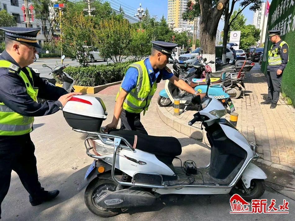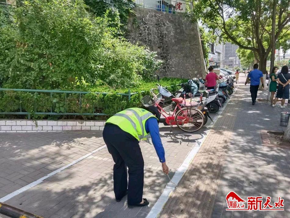 新天水讯【通讯员靳雪萍】近期来,为深入推进城市环境精细化管理,解决非机动车乱停乱放现象,秦州区执法局玉泉中队采取有力措施,在辖区内开展非机动车乱停乱放专项整治行动,重点对辖区道路非机动车乱停乱放、占用道路影响行人通行等不文明现象予以规范治理。