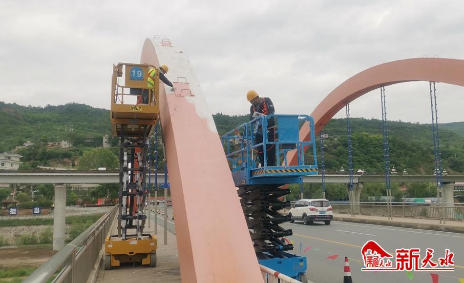 新天水讯【记者蔚军平】为迎接2023(癸卯)年公祭中华人文始祖伏羲大典,打造美丽宜居新秦州,精塑伏羲始祖文化传承创新区形象,秦州区住建局紧锣密鼓、扎实推进城区桥梁油饰美化及亮化检修完善工程,进一步提升城区桥梁“颜值”,“扮靓”城市形象,喜迎“节会”。