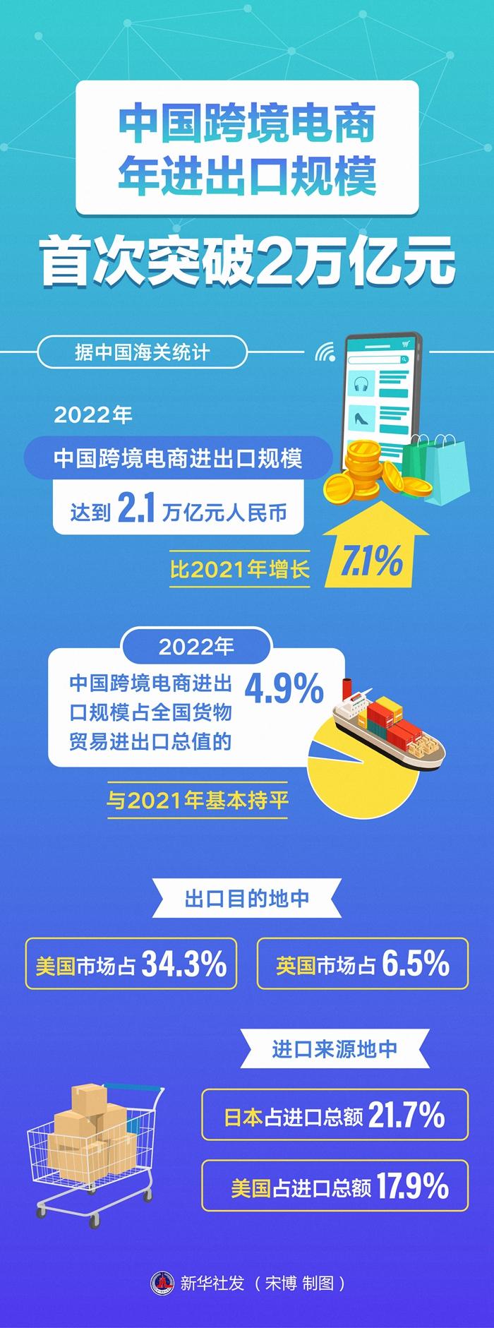 中国跨境电商年进出口规模首次突破2万亿元