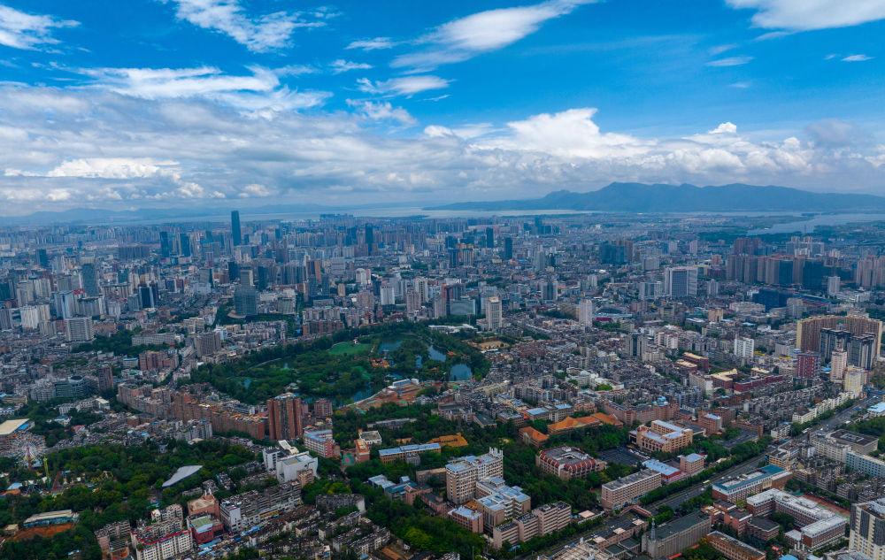 空中俯瞰雨后的昆明城区(无人机照片,6月15日摄)。新华社记者江文耀 摄