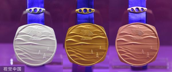 担任奖牌设计团队主要负责人的中国美术学院工业设计系主任章俊杰说:“奖牌设计意象汇聚杭州三大世界文化遗产:西湖、大运河、良渚古城遗址,打破亚运会标志放在奖牌中心的常规版式,将标志置于开阔的画卷之上,体现开放包容的东方审美。”