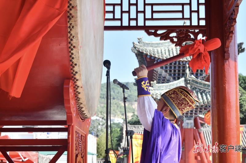 肃立、起乐毕,大典进入第二项仪程:击鼓鸣钟。在庄严、肃穆的祭祀现场,鼓声威武,钟磬悠扬,击鼓34通,鸣钟9响,代表中华民族传统的最高礼数和全体中华儿女对人文始祖创世功绩的崇高敬仰。
