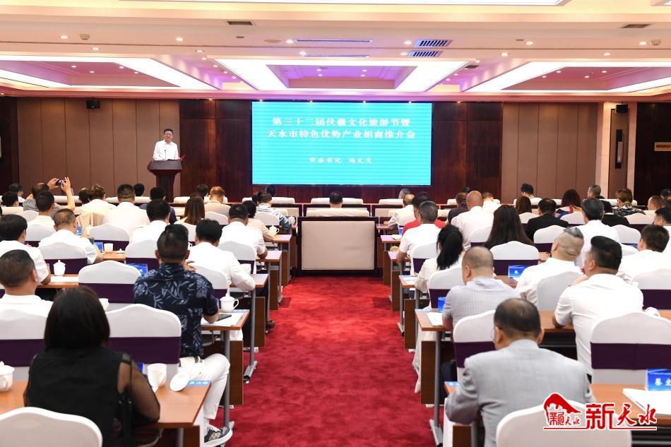新天水讯【记者王晓馨】6月23日上午,在第32届伏羲文化旅游节举办之际,市委、市政府举行特色优势产业招商推介会,与各位企业家共商合作、共谋发展。市委书记冯文戈出席并致辞,市委副书记、市长王国先主持。
