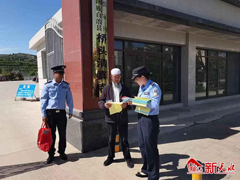 新天水讯 为进一步增强人民群众的法治意识和自我保护能力,提高人民群众对公安工作的满意度,大力营造学法、用法、懂法、守法的良好氛围,近日,张家川县公安局法制大队组织开展了法律“八进”进宗教场所、进市场等宣传活动。