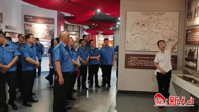 新天水讯 6月29日,秦州区执法局东关中队党支部联合玉泉中队党支部和中城中队党支部党员干部30余人,开展庆“七一”参观学习活动。