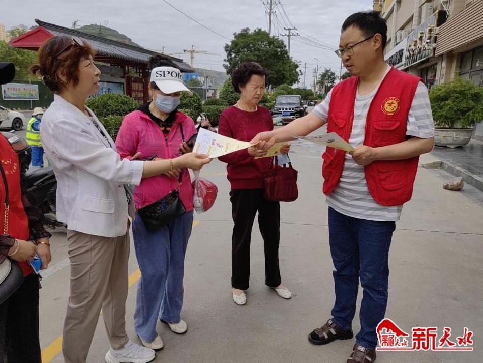 新天水讯【记者安蓉】今年6月是第22个全国“安全生产月",为切实做好安全生产月道路交通安全工作,提高居民的交通安全意识,减少和预防交通事故的发生,6月21日上午,秦州区天水郡街道西十里社区组织网格员、志愿者开展了“加强道路交通安全教育 提高道路交通安全意识”为主题的道路交通安全宣传活动。