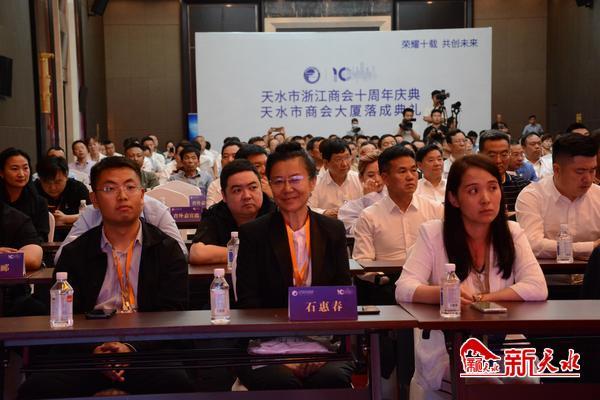 天水市委副书记、统战部部长杨晓锋出席并致辞。市人大常委会副主任张栋梁,市政府副市长、市工商联主席董小平,市政协副主席马筱宁出席庆典活动。中国作家协会社会联络部主任李晓东,浙商总会党委书记、浙江省工商联副主席吕晓峰等来自全国各地浙商企业家代表,以及天水市异地商会代表共300多人出席了庆典活动。