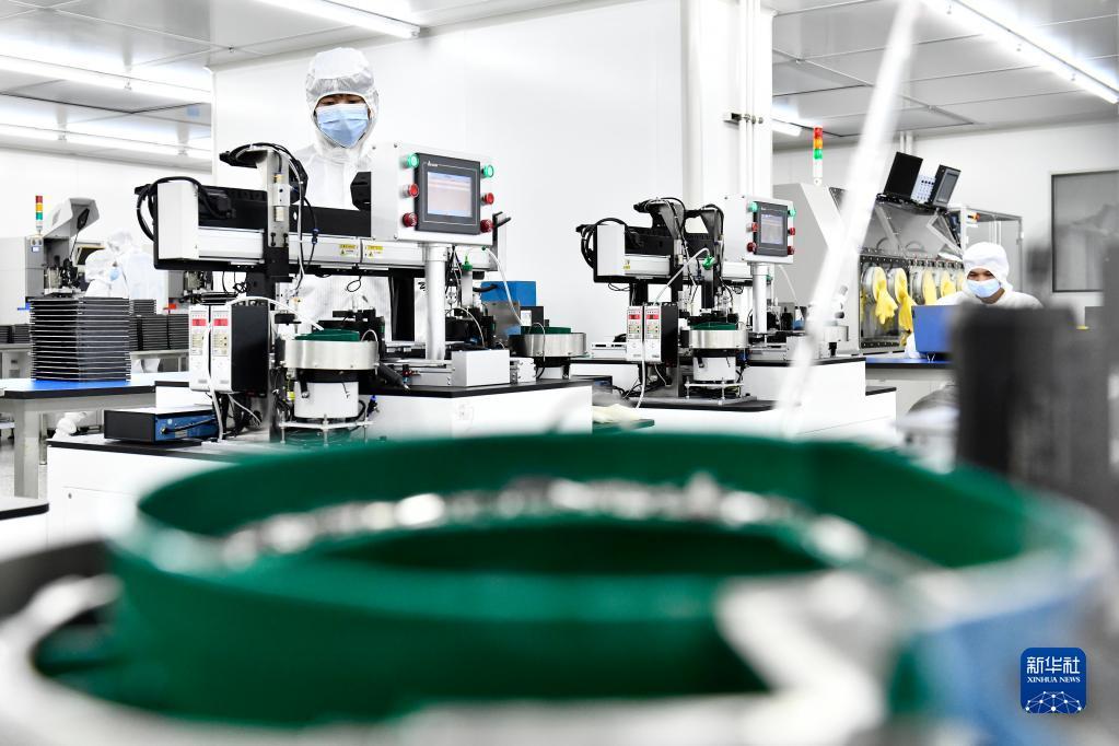 6月29日,工作人员在山东省日照高新技术产业开发区智慧微电产业园生产滤波器。新华社记者 郭绪雷 摄