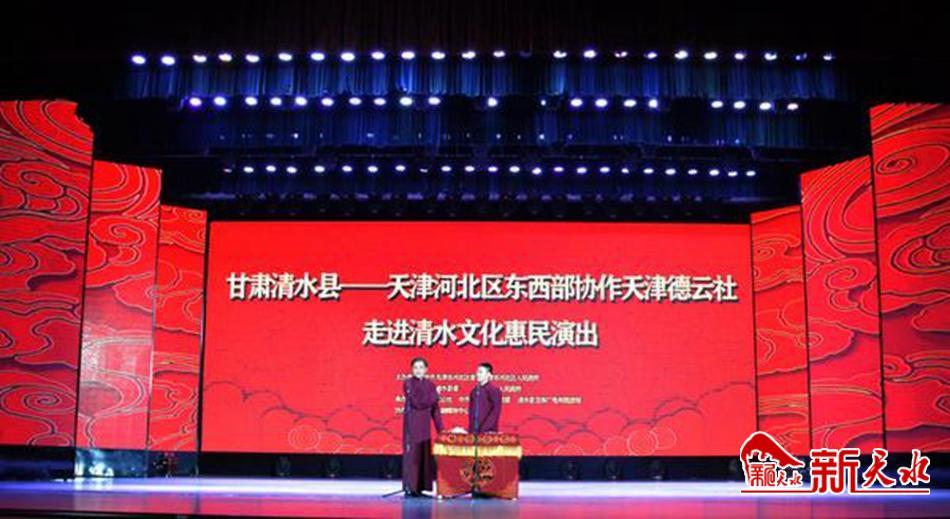 近年来,在天津河北区和清水县两地党委政府的共同努力下,河北区和清水县缔结山海之盟,密切交流合作,建立了深厚的兄弟情谊。这次文化惠民演出活动是两地深入贯彻落实党的二十大精神关于东西部协作的生动实践,是携手共促乡村振兴的生动写照,也是深入开展文化交流交融,助力“文艺润心”康养品牌打造的具体行动,将进一步激发两地人民以更加昂扬的斗志、更加饱满的热情和更加奋进的状态,携手打造跨区域合作新典范,谱写新时代东西部协作新篇章。