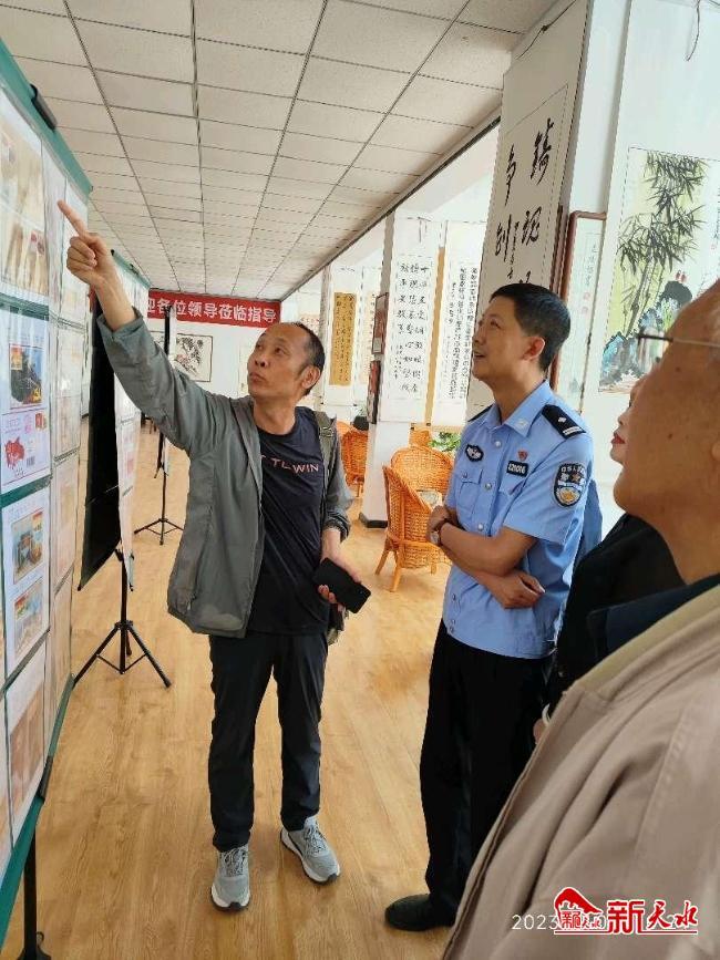 本次集邮展览还特别邀请了天水市集邮协会名誉会长、天水市老年大学党委副书记汝绥庆现场挥毫,受到了广大公安民警的好评。